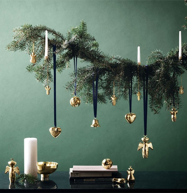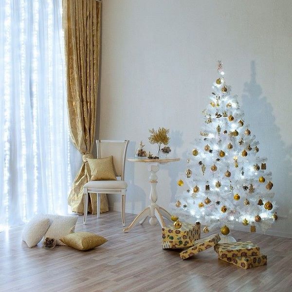 Vous pouvez ajouter de la spectaculaire grâce aux guirlandes qui complètent le décor de Noël habituel, ainsi qu'aux décorations réalisées de manière indépendante pour le Nouvel An. De grandes branches peuvent être fixées au-dessus de la table dans la cuisine ou dans la salle à manger, ainsi que fixées au sol au lieu du sapin de Noël habituel, qui sera très original dans le style moderne du décor du Nouvel An.