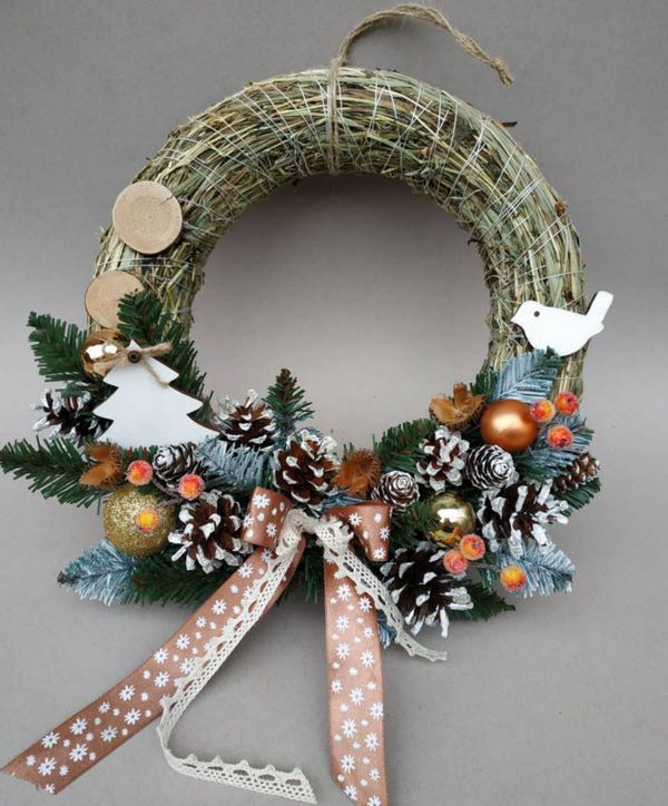 Nous proposons de réaliser des couronnes de Nouvel An élégantes indépendamment des branches et des cônes, en complétant la composition avec des boules, des rubans, des chaînes, ainsi que tout autre décor coloré, grâce auxquelles la couronne de Nouvel An sera incomparable.
