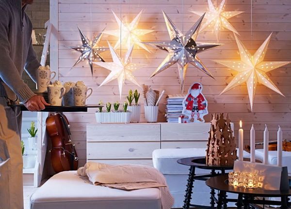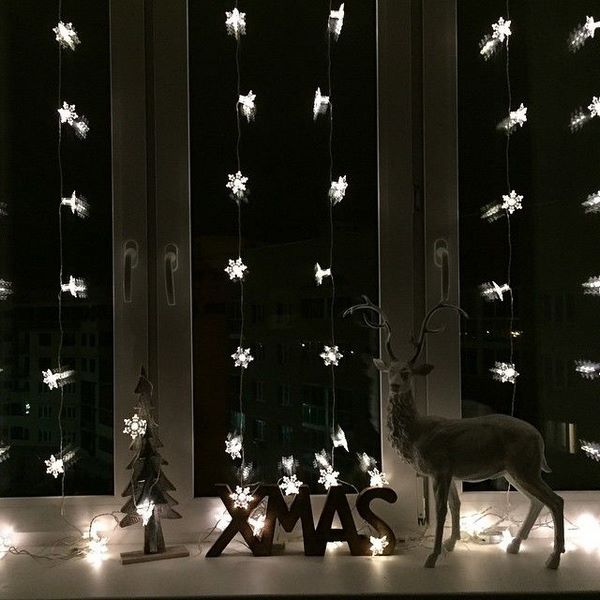 - Décoration de Noël des ouvertures de fenêtres avec des pendentifs en textiles, papier, carton, compositions à branches et cônes peints, ainsi que des guirlandes spectaculaires pour fenêtres;