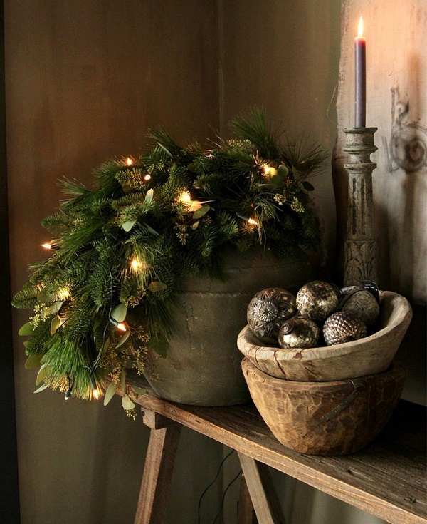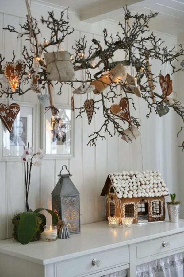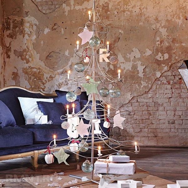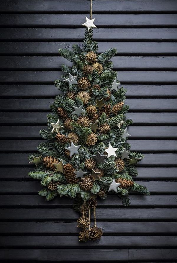 Les "arbres de Noël" branchés, déclinés en différentes variantes, peuvent être décorés de la manière habituelle, à l’aide de guirlandes scintillantes, ainsi que pour créer d’intéressants jouets de Noël douces avec vos propres mains, à partir de cônes, de couverts, de fruits secs.