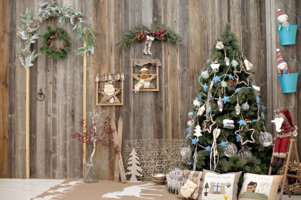 - stylisation des murs, plafond, portes faites-le vous-même à l'aide de branches et de guirlandes, de guirlandes, de pendentifs colorés en carton et en textile;