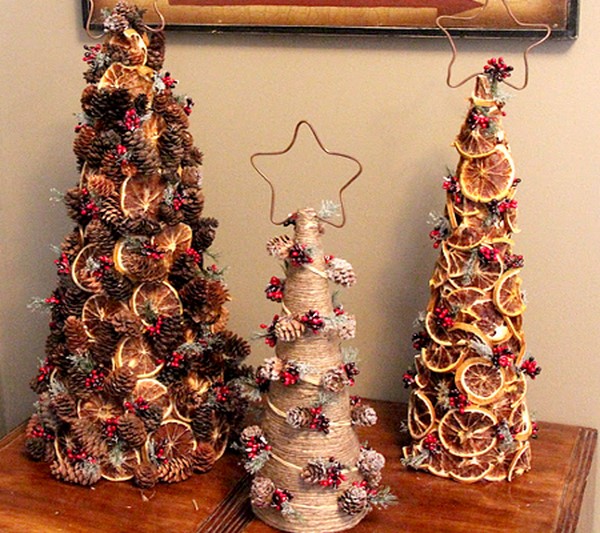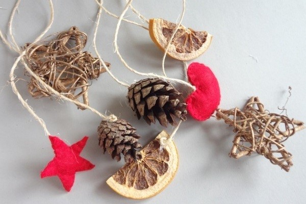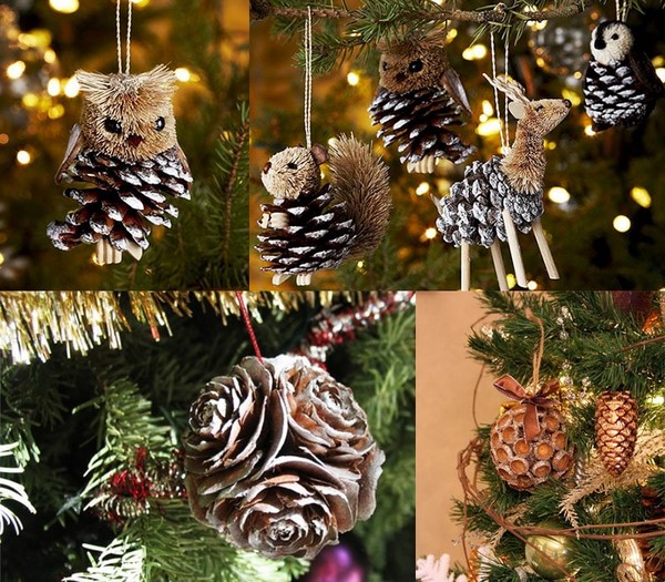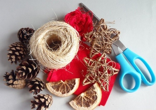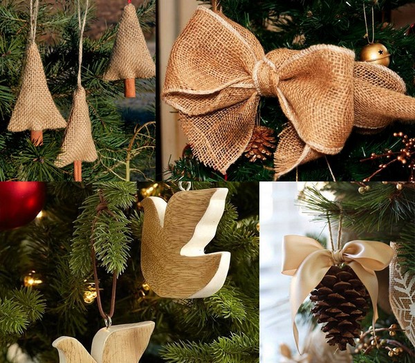 Des jouets de Noël à la mode peuvent être facilement fabriqués avec vos propres mains à partir de matériaux improvisés. Cela peut être des cônes, des glands, des branches, de la jute, une certaine forme de fil métallique avec un fil sinueux, des objets en bois et des branches.