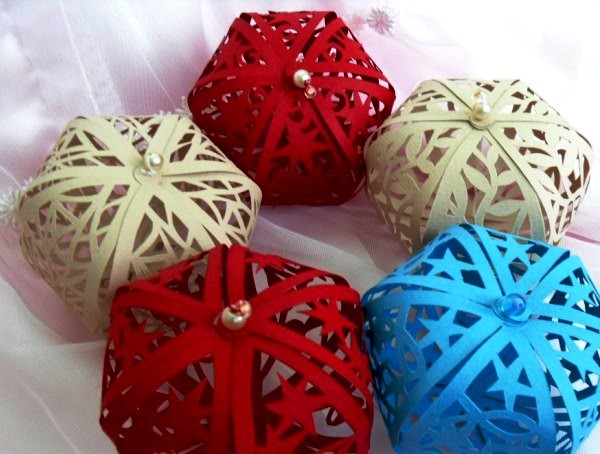Vous pouvez également créer vous-même des jouets de Noël à la mode, en utilisant diverses variantes des matériaux disponibles: ampoules ordinaires, carton, papier et papier de couleur, paillettes, textiles, cordes, rubans et perles.