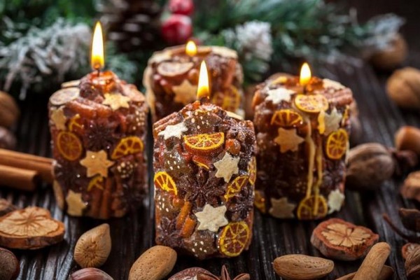 Des bougies Des bougies luminescentes peuvent être créées à l’aide de bougies ordinaires et aromatiques. Et il existe de nombreuses variantes sur la façon de décorer la maison pour le Nouvel An avec des bougies. Pour la table du Nouvel An, sur les rebords des fenêtres, sur les étagères, sur la cheminée, vous pouvez disposer les décorations du Nouvel An 2026 sous forme de bougies. Les bougies de Noël elles-mêmes peuvent être décorées avec des bâtons de cannelle, des rubans, des agrumes séchés, des branches d’épinette et des couronnes, créant ainsi des compositions de Noël avec des bougies.