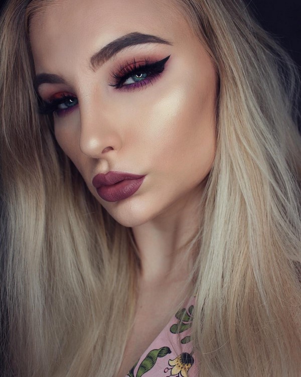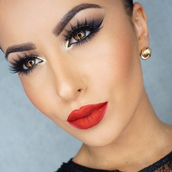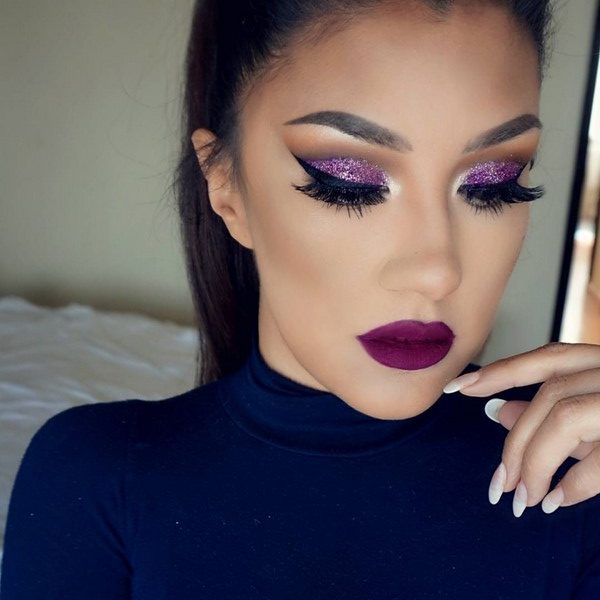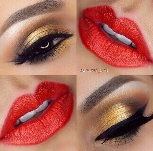 Créant un maquillage à la mode pour le Nouvel An, il vaut la peine de se concentrer soit sur les lèvres, soit sur les yeux, même si cela devrait être spectaculaire.