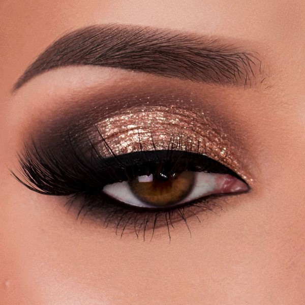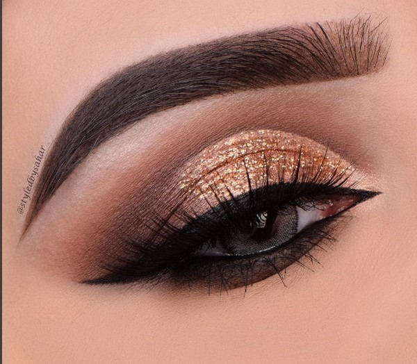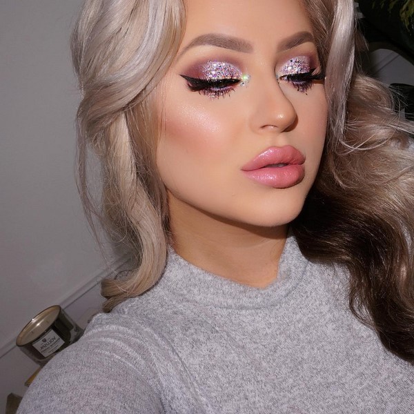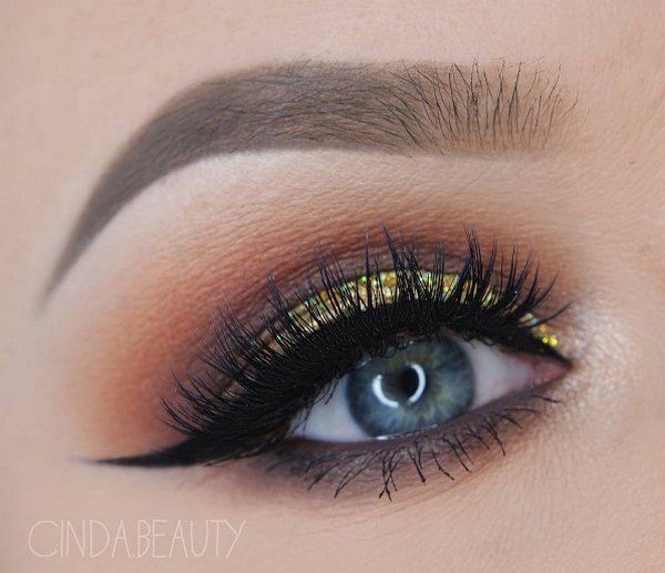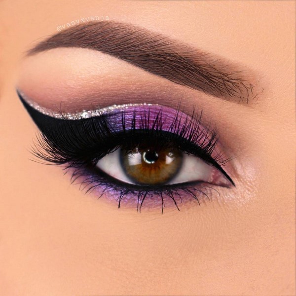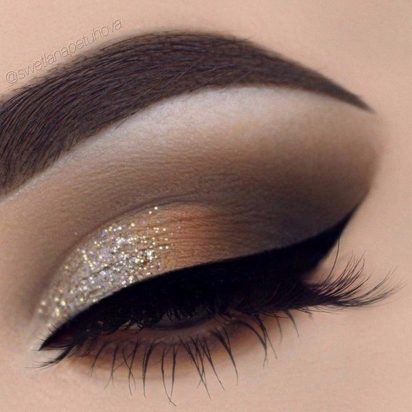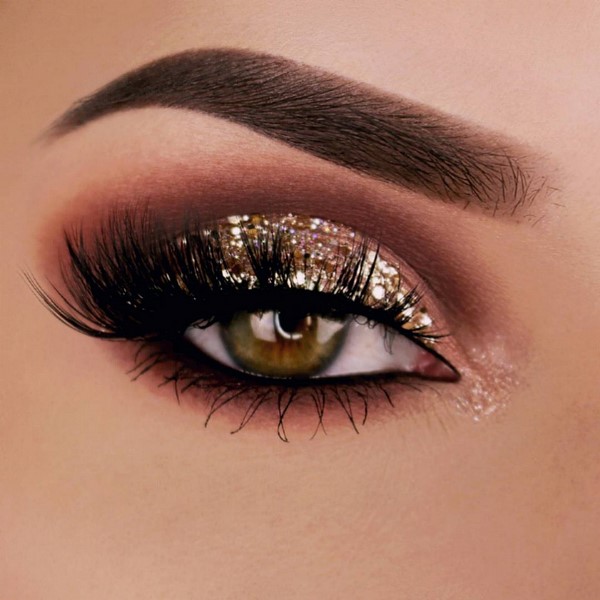 Vous pouvez apporter avec des nuances variées à la fois la paupière supérieure et la paupière inférieure. Cela s'applique également au maquillage pour les yeux du Nouvel An avec des étincelles et des paillettes avec modération dans le haut ou le bas des yeux.