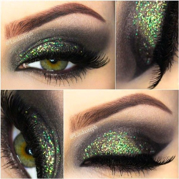 Briller n'arrive pas beaucoup! Et cela peut certainement être dit à propos du maquillage pour les yeux à la mode du Nouvel An avec des paillettes, des paillettes, des eye-liners de couleurs vives et des strass.