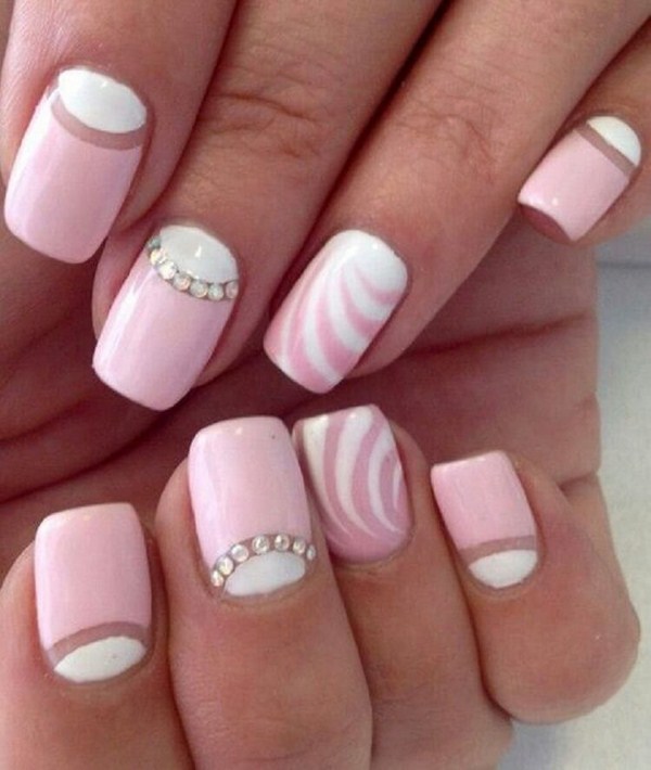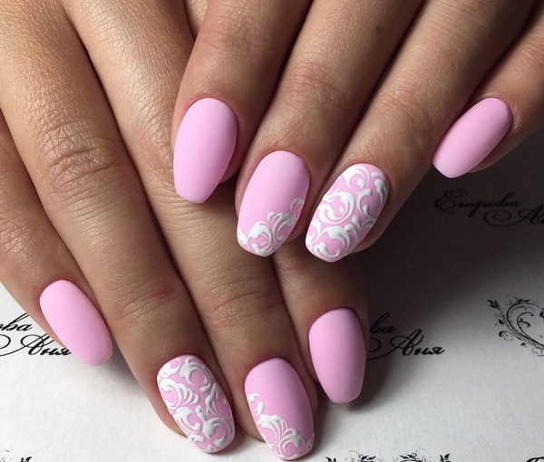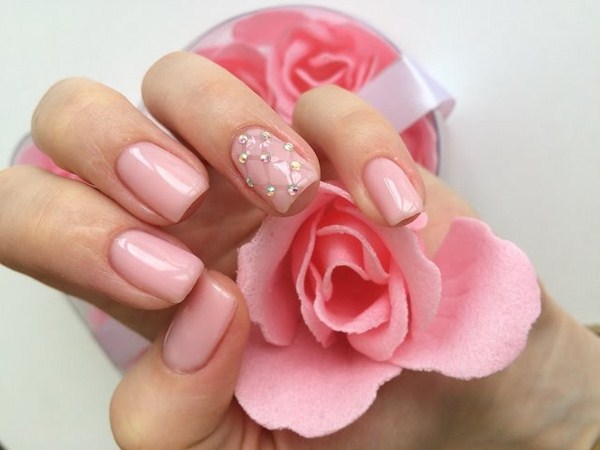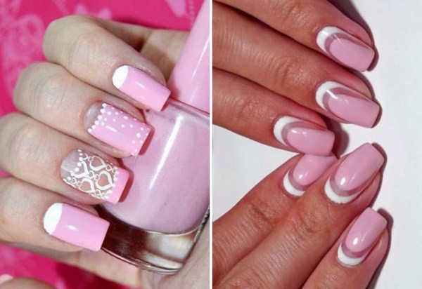 Pour une apparence douce et douce, le meilleur choix sera une manucure rose à la mode dans des tons nude et pastel, ainsi que du vernis rose, dont le ton est similaire à celui du blanc ou de la chair.