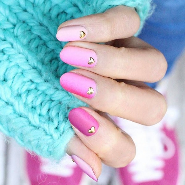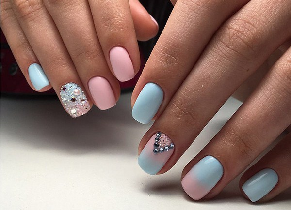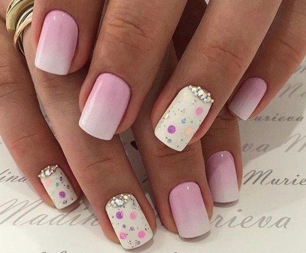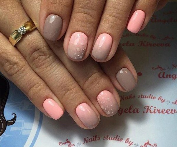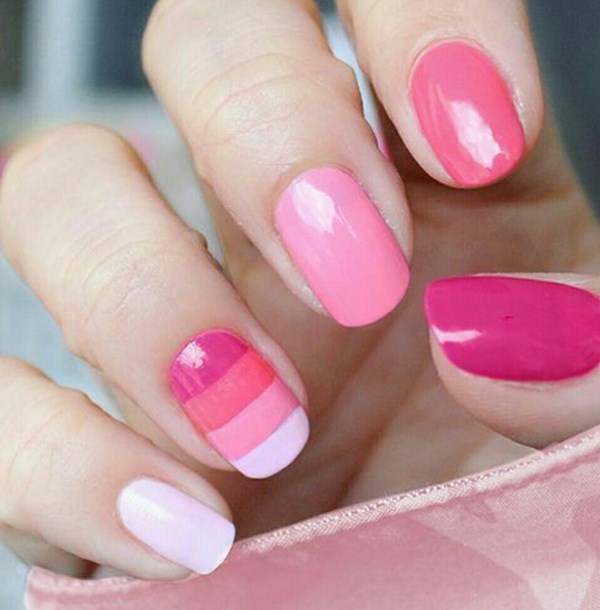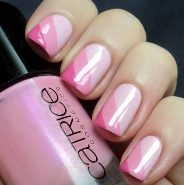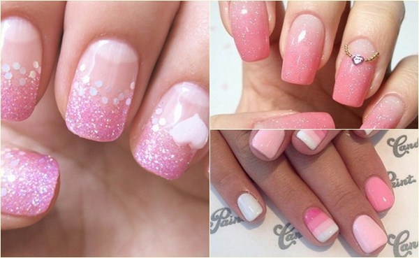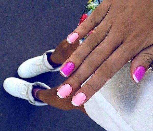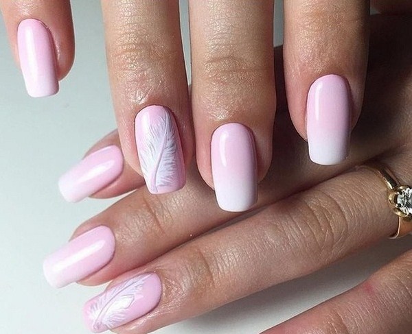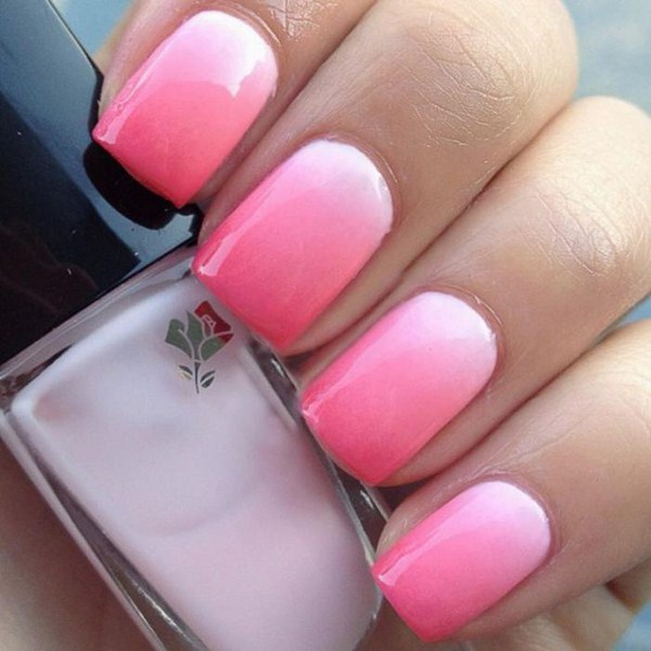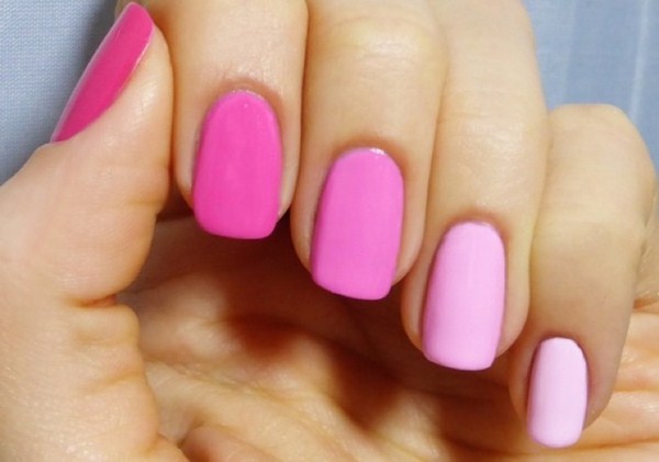 Un autre type de manucure rose délicate sera l’ombre rose, dont le dégradé peut se transformer en nuances de gris, de rose plus saturé, de pourpre et de bleu.