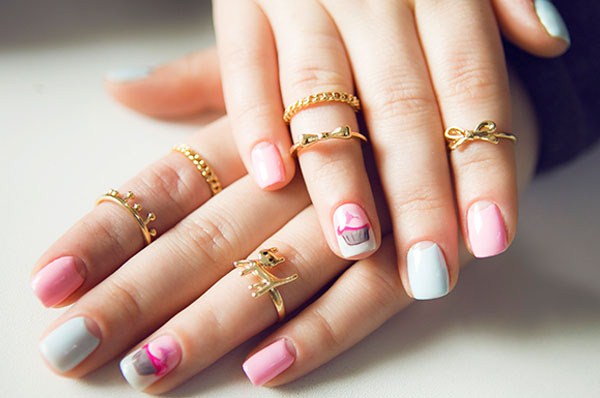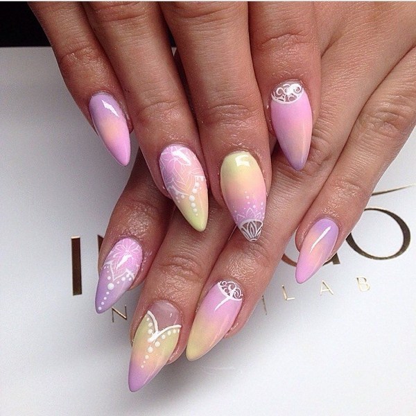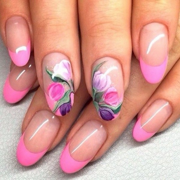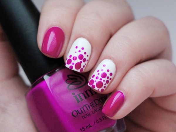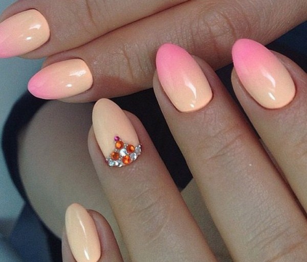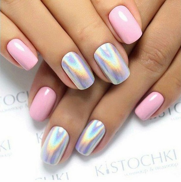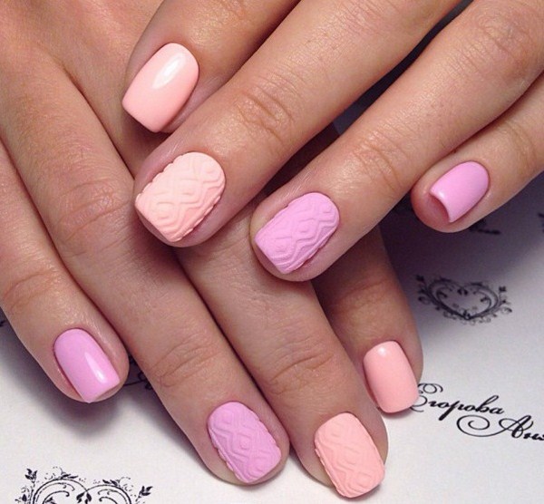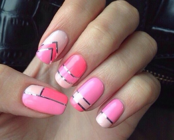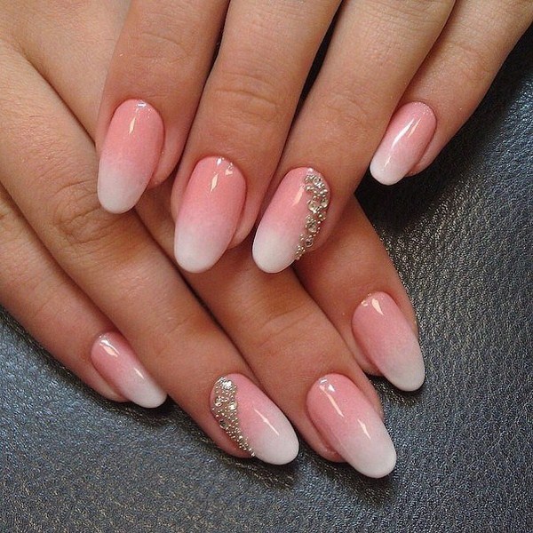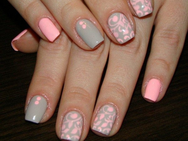 Un autre type de manucure rose délicate sera l’ombre rose, dont le dégradé peut se transformer en nuances de gris, de rose plus saturé, de pourpre et de bleu.