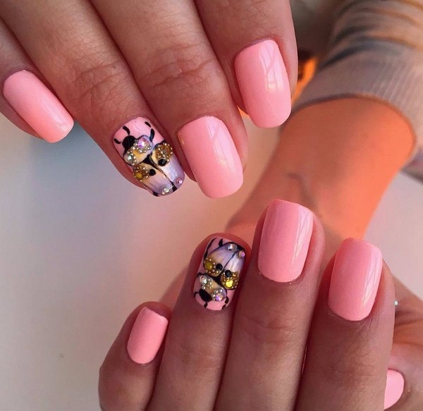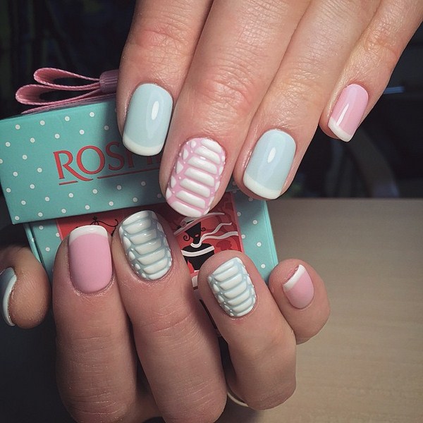En outre, une douce manucure rose est le meilleur choix pour un été chaud, quand on veut légèreté et fraîcheur. Vous pouvez compléter et diversifier la manucure rose pâle avec des tons pastel - turquoise, pêche et bleu.