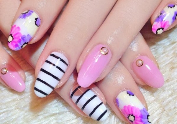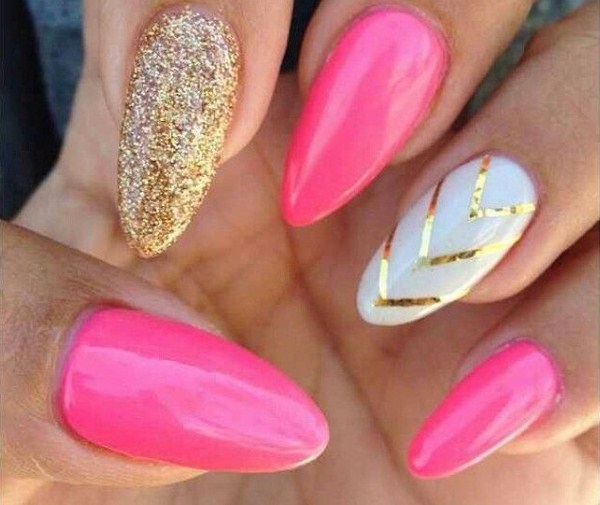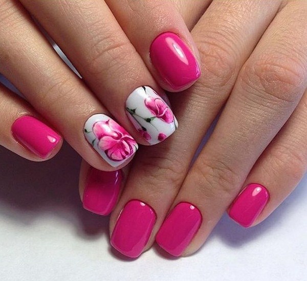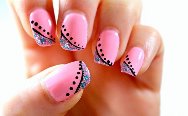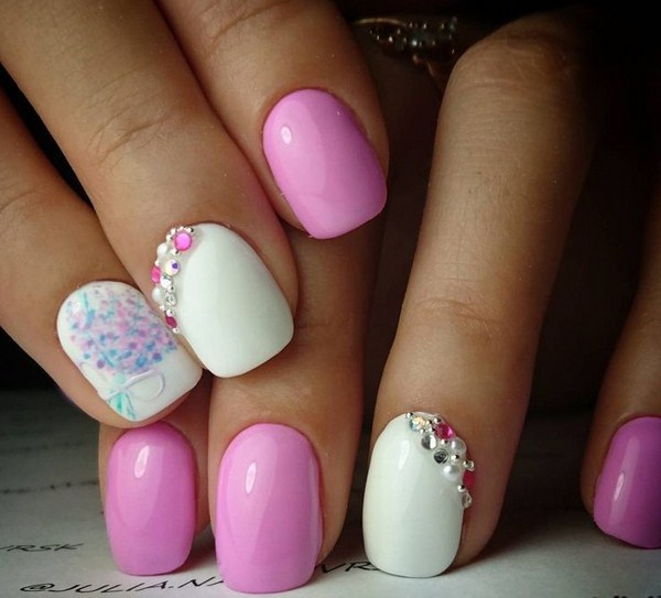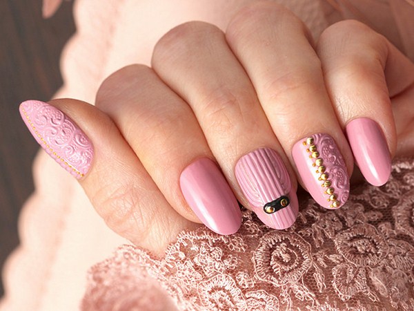 Pour créer une manucure rose plus brillante, vous devez utiliser des teintes saturées de vernis, une combinaison de vernis rose et noir, de jolies pierres, des rayures et même des fils pour une manucure des plus originales.