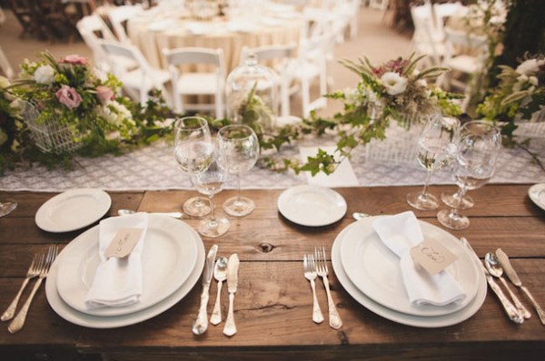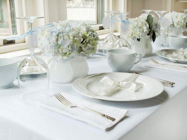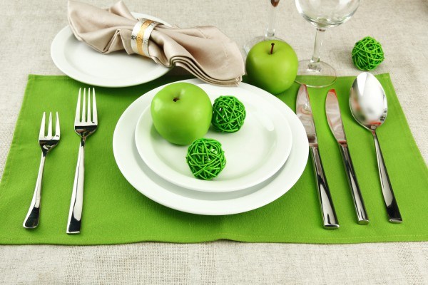 Le réglage de la table de fête prévoit la disposition des assiettes sur la table à une distance d’un demi-mètre l’autre et à un centimètre du bord de la table.