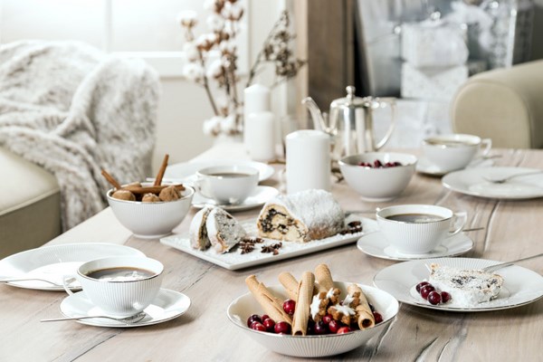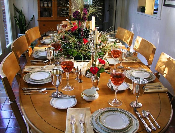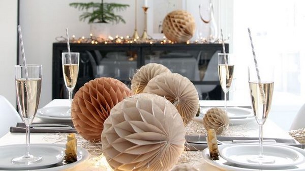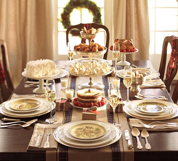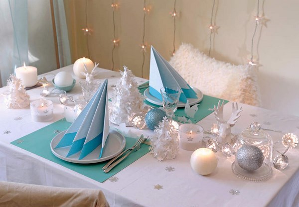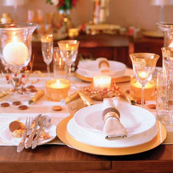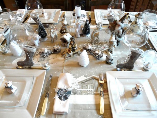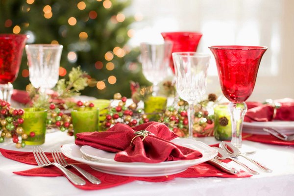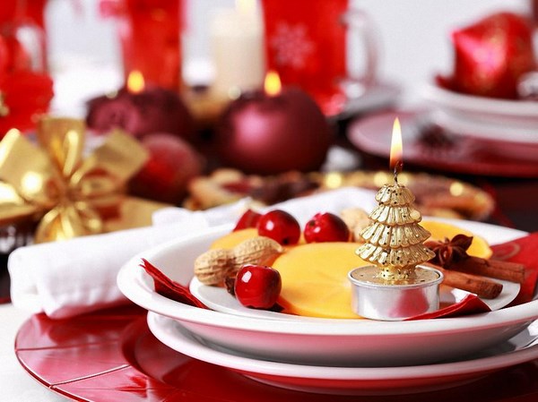 Tout d’abord, la table de fête se compose d’articles bien placés pour le repas: assiettes, appareils ménagers, verres, ainsi que du décor original sur la table, qui donnent le «ton» souhaité pour l’ensemble des vacances.