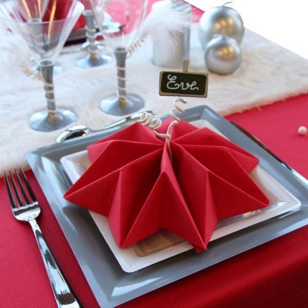 Un beau décor de table de fête ne peut se passer de serviettes de table originales qui peuvent être pliées avec style et décorer parfaitement la table de fête avec elles.Vous pouvez choisir des serviettes en tissu ou du papier de couleur inhabituelle.