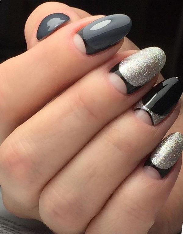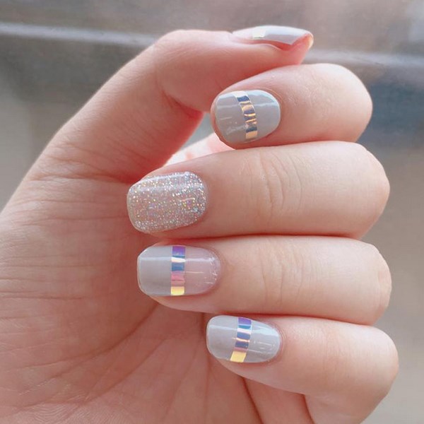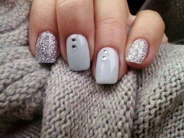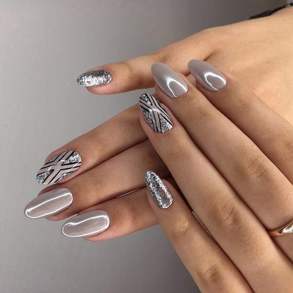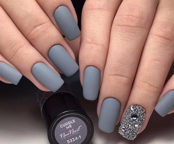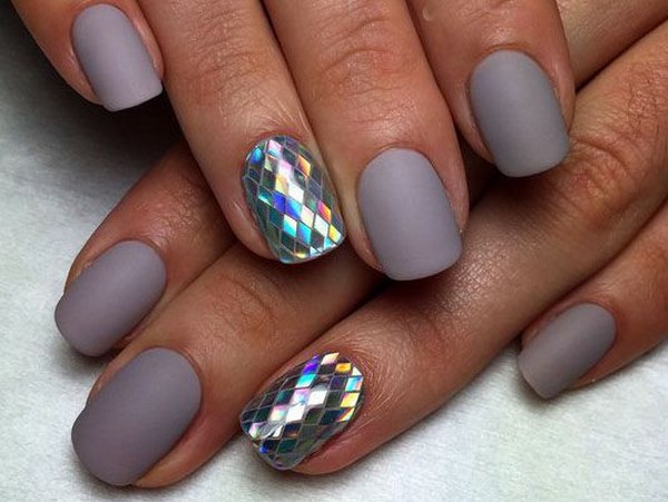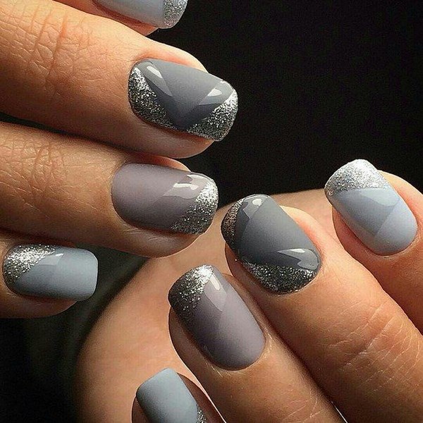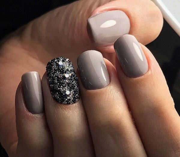 Des paillettes sur quelques doigts ou sur un nom, par exemple, sans nom, transformeront une manucure monochrome grise en une élégante et élégante, pouvant être complétée par une robe de soirée et une belle tenue décontractée.