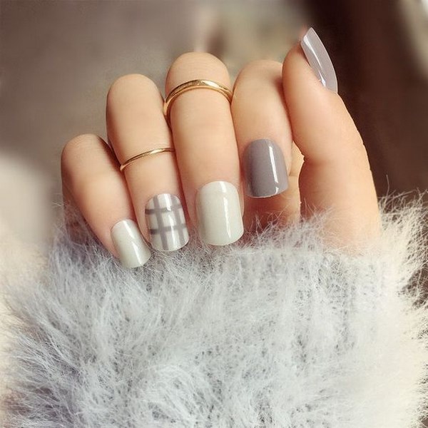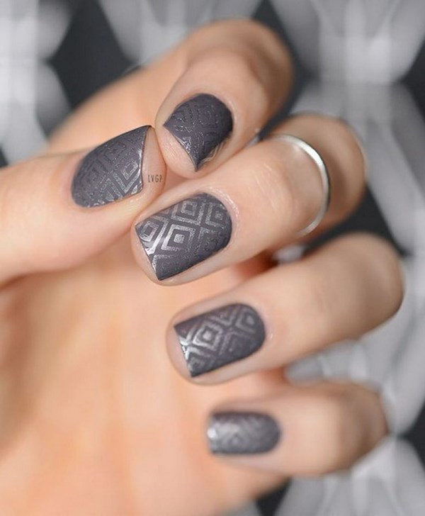 Le fait que le gris à la mode s’accorde bien avec toutes les formes de la plaque à ongles plaira également aux filles et aux femmes.