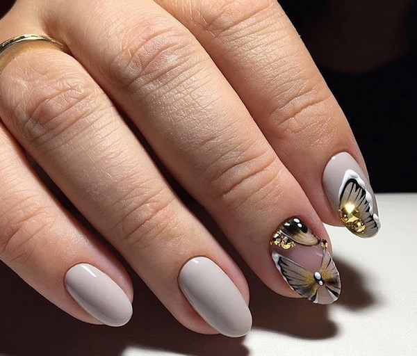 Une manucure grise à la mode dans l’une des options aidera à démontrer l’effet de doigts bien coiffés avec un dessin laconique, et dans un autre - d’attirer l’attention sur le dessin ravissant avec une solution inhabituelle.
