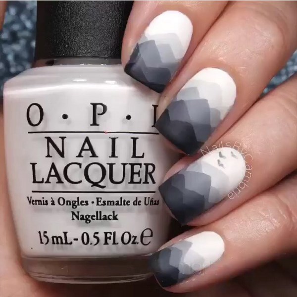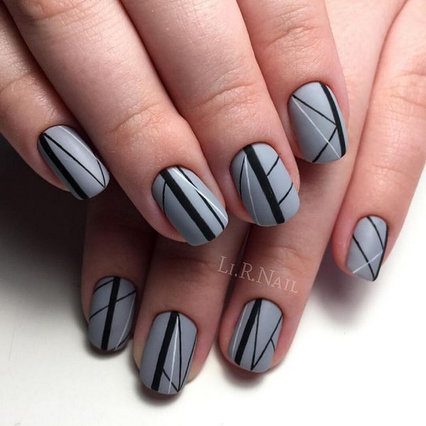 Si vous voulez une manucure discrète et neutre - choisissez gris, vous voulez un dessin d’ongle original et efficace - nous vous suggérons également de choisir le gris, créé dans différentes directions.