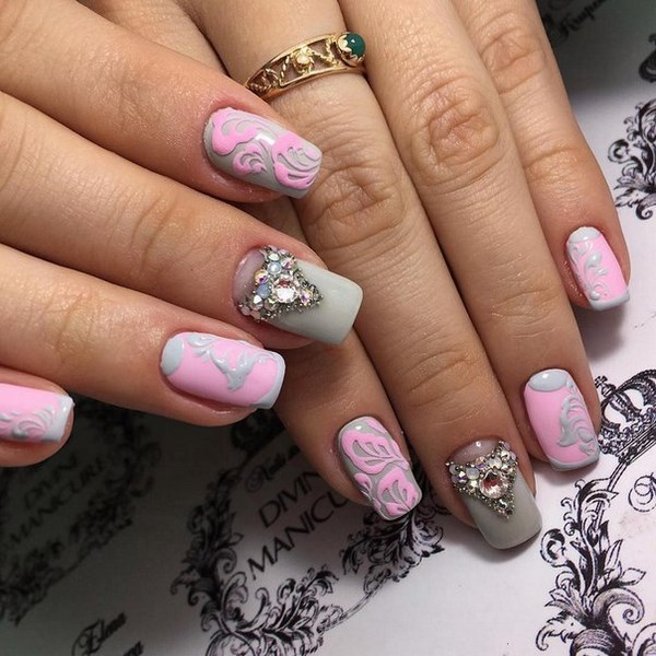 Un des tandems les plus gagnants en manucure grise est le gris avec le rose, qui semblent être créés pour se compléter.Une telle manucure grise semble douce et douce, rafraîchissant parfaitement l'apparence des filles et des femmes.