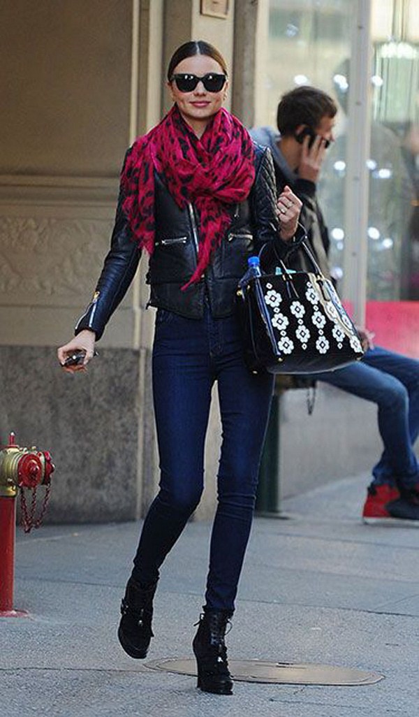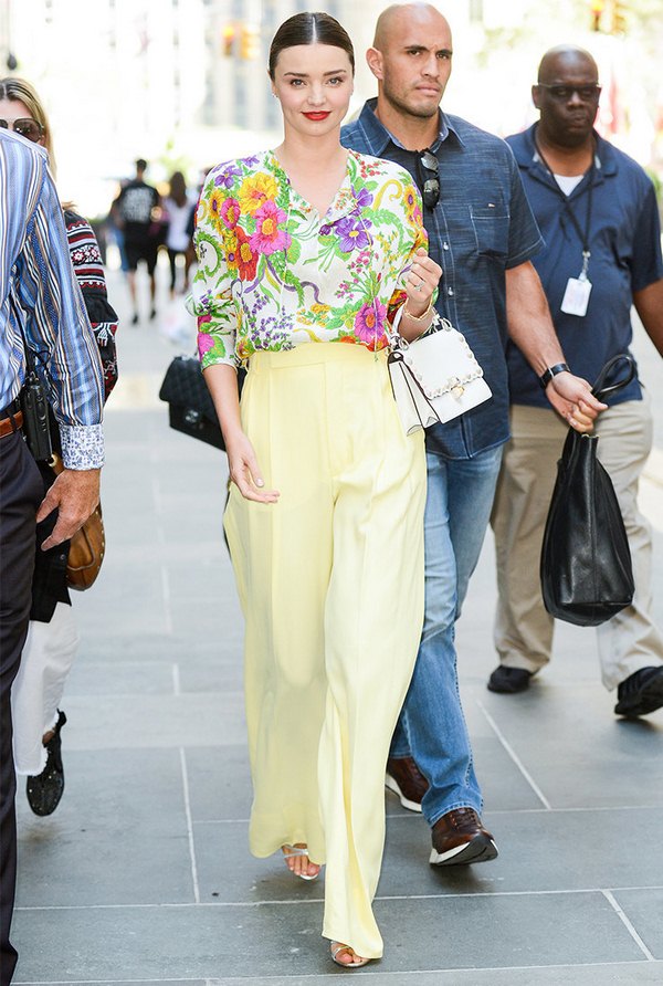 Dans la vie de tous les jours, Miranda Kerr présente des looks de rue élégants et stylés, préférant des robes laconiques avec une gaine, un pantalon slim, des chemisiers, des manteaux et des vestes élégants et féminins, ainsi que des accessoires harmonieusement choisis et des talons aiguilles.