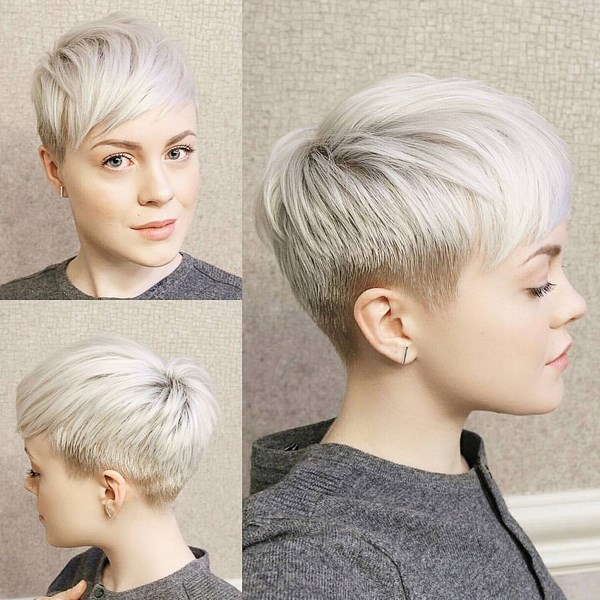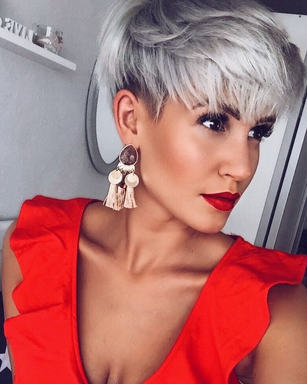 Le type de coupe de cheveux le plus audacieux et extravagant est un lutin ultra-court, parfait pour les filles et les femmes minces et minces avec des traits du visage sophistiqués et gracieux.