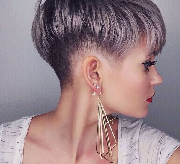 Des coupes de cheveux courtes excitantes avec divers types de motifs rasés sur les tempes de la nuque, ainsi que des whiskies simplement rasés sont un type de coupe de cheveux très efficace pour les cheveux courts pour les filles.