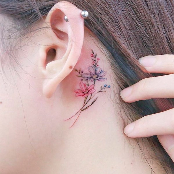 Les tatouages mignons avec des fleurs sur la clavicule, l'épaule, le cou ou derrière l'oreille sont très féminins et élégants, décorant délicatement le corps et donnant féminité et romantisme aux filles.