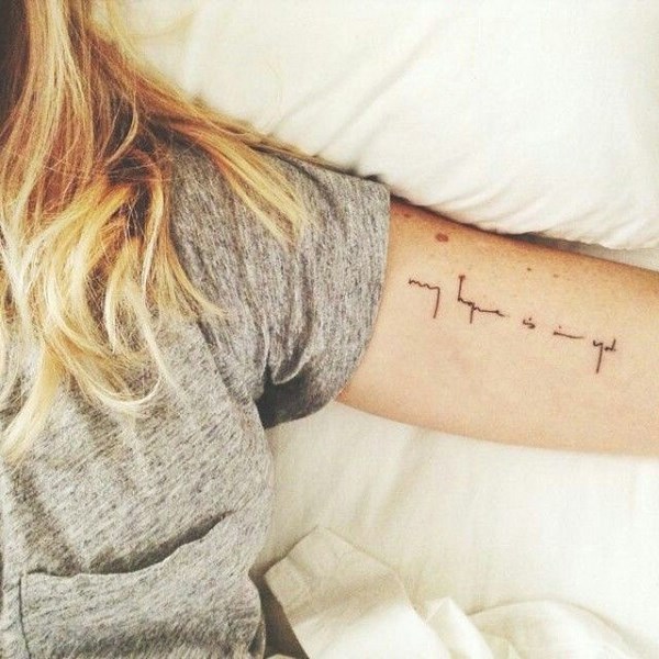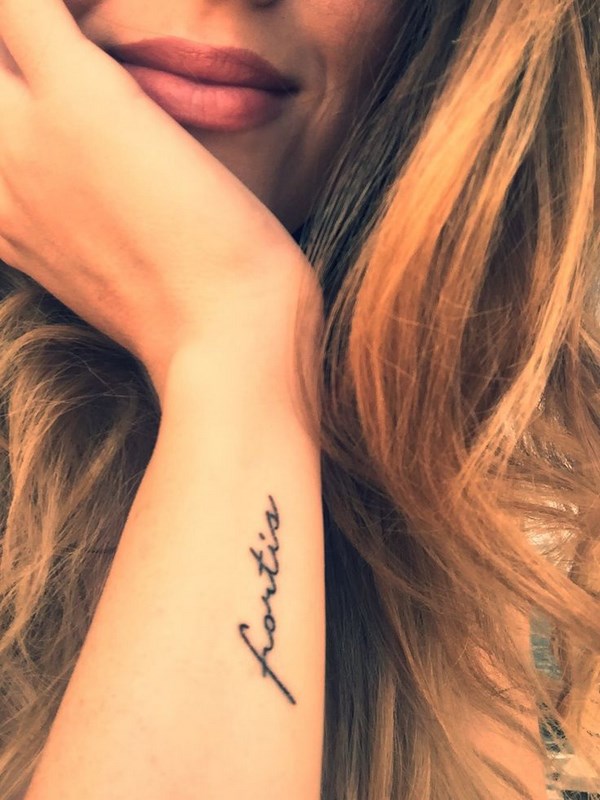 Pas moins tatouages à la mode pour les filles sous la forme de diverses inscriptions en italique et fine.