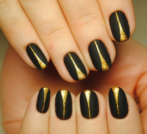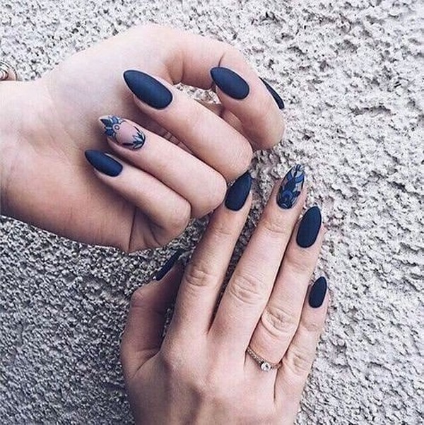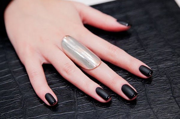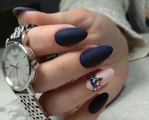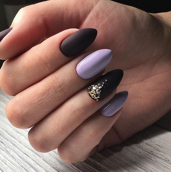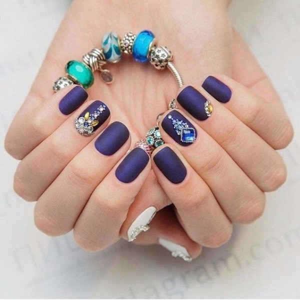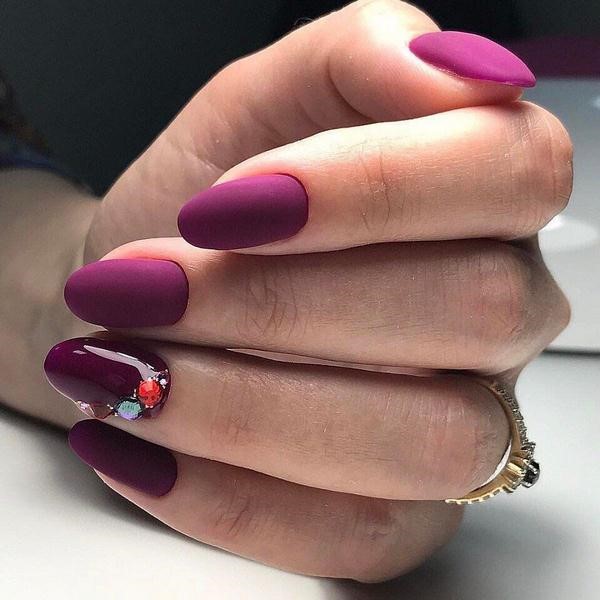 Décorez, par exemple, un ou deux doigts avec un motif, des strass, ou les deux, couvrez une paire d'ongles avec une couleur différente ou un vernis brillant, ce qui rendra une manucure foncée mate intéressante et mémorable.