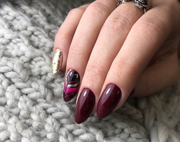 Vous obtiendrez un dessin d’ongle plus raffiné et romantique de couleur sombre si vous utilisez des dessins du style voie humide ou aquatique, des peintures complexes, ainsi qu’un dessin combiné, complété par des paillettes, des feuilles métalliques ou de la poudre.