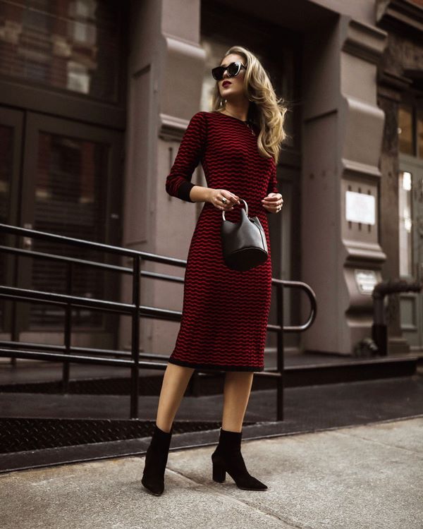 Le style ajusté de la robe est toujours pertinent, vous permettant de mettre en valeur la féminité de l’image et de donner un effet. En outre, la robe de l'étui en fine maille peut être complétée à merveille avec des baskets et créer une image de style rue. Pour le bureau, le mieux est une robe fourreau à la mode avec un col haut, et pour le soir, vous pouvez choisir une robe exquise à fines bretelles ou aux épaules ouvertes dans le style du boîtier.
