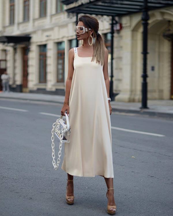 Le choix idéal de robes pour le printemps et l'été sera proposé dans un modèle de robe d'été à bretelles fines ou à col en v. Cette version d'une robe à la mode peut être réalisée avec un imprimé floral brillant et excitant, une brillance satinée, ainsi qu'une solution monochrome, telle qu'une robe noire spectaculaire avec un dos nu. Dans cette tenue, vous pouvez être belle en après-midi et en soirée, ainsi que la capturer en vacances.