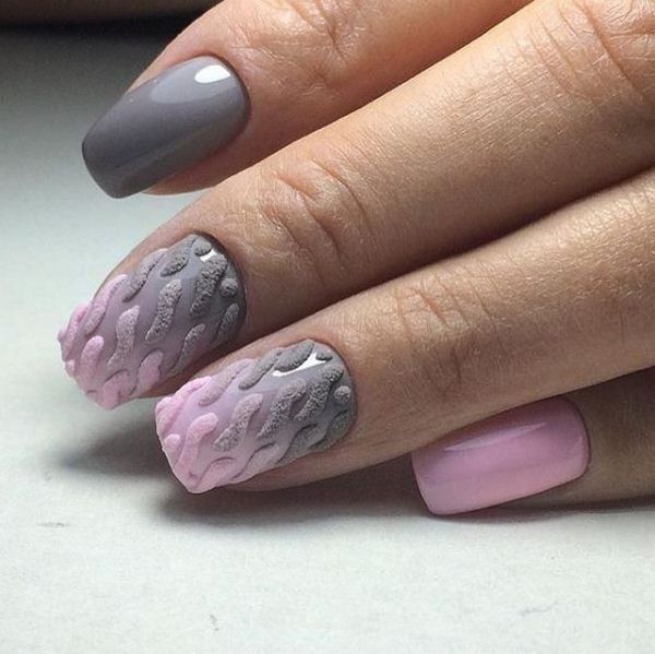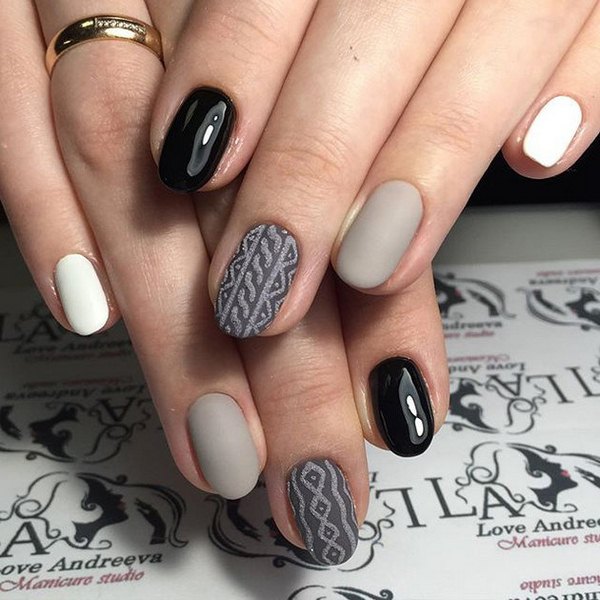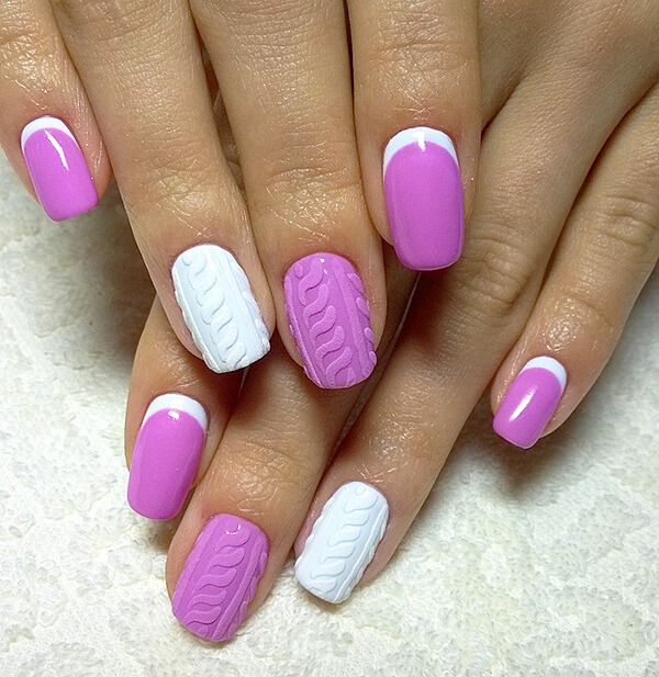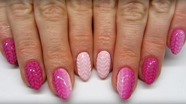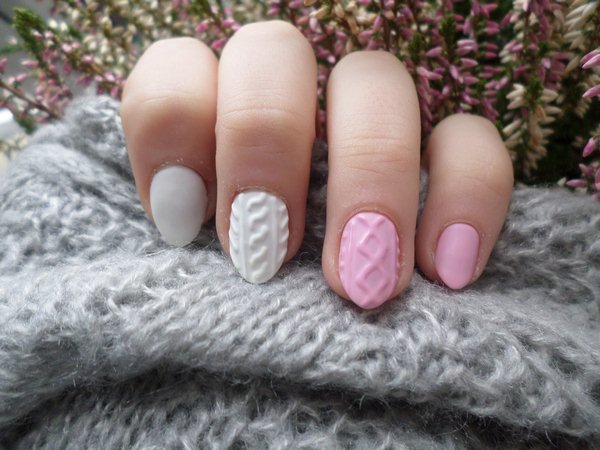 Utilisez plusieurs nuances de gel pour obtenir un beau motif tricoté sur les doigts: par exemple, vous pouvez créer un motif en trois teintes à la fois ou peindre des ongles différents avec une teinte différente, qui a également un aspect élégant et original.