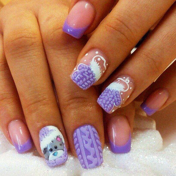 Les images amusantes d'un joli nounours à la manière d'un pull tricoté semblent très originales et amusantes sur les ongles. Une telle manucure tricotée rehaussera l'ambiance non seulement pour vous, mais également pour votre environnement, car les jolis ours sont très beaux.