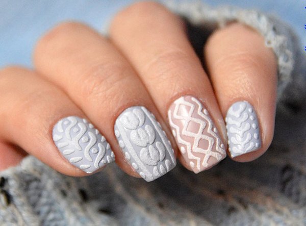 De beaux motifs tissés dans différentes variations ont l’air élégant et inhabituel, comme si vous enveloppiez vos ongles dans une belle robe en osier qui ressemble à nos chaussettes chaudes, plaids, pulls, écharpes, etc.