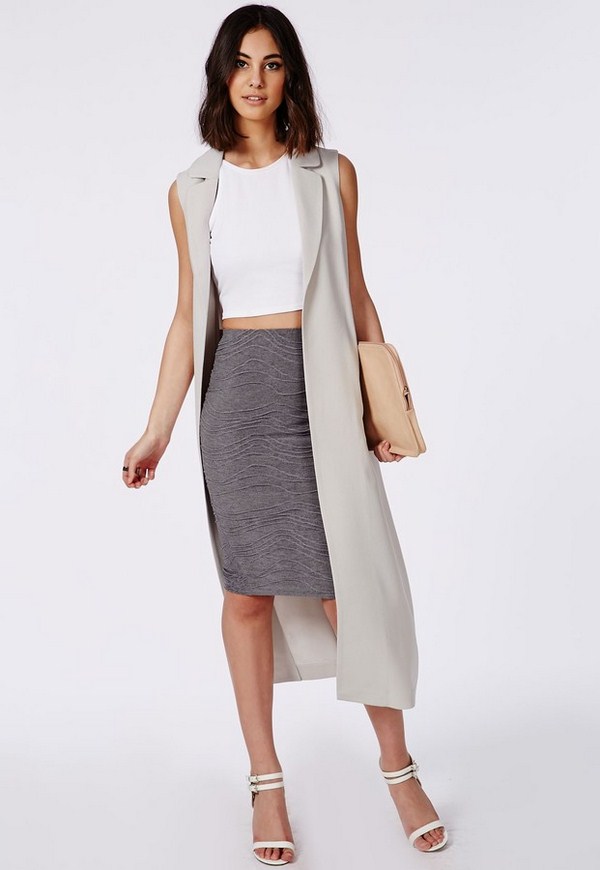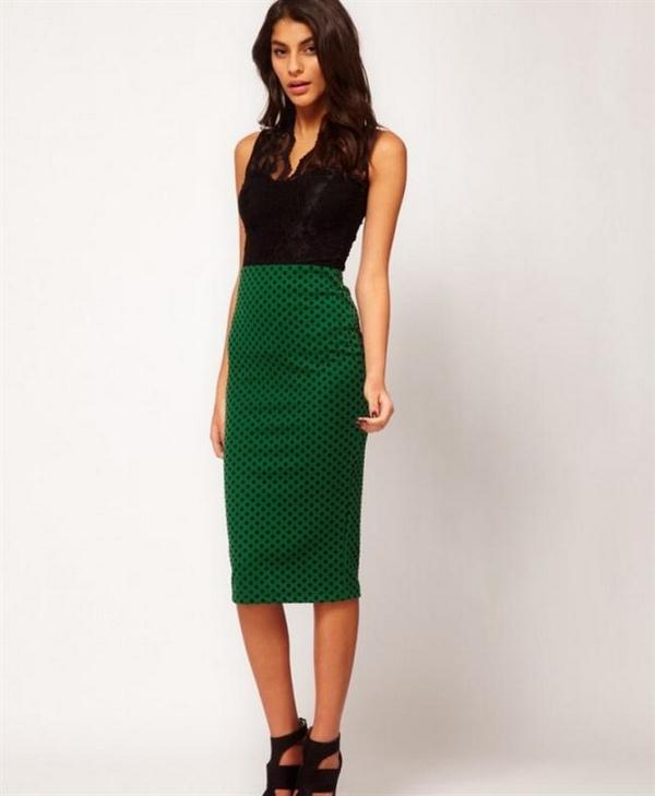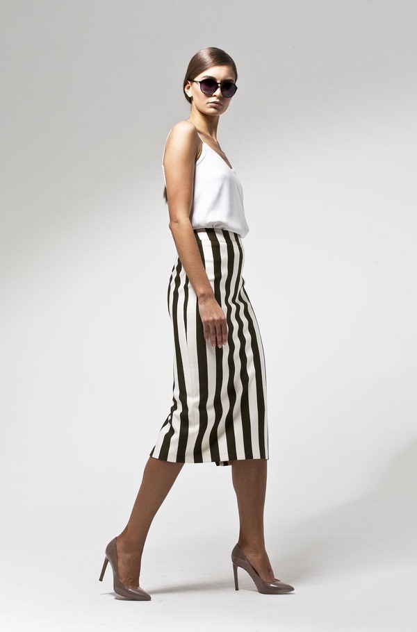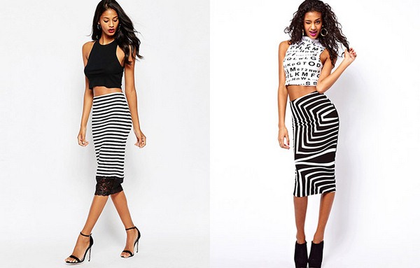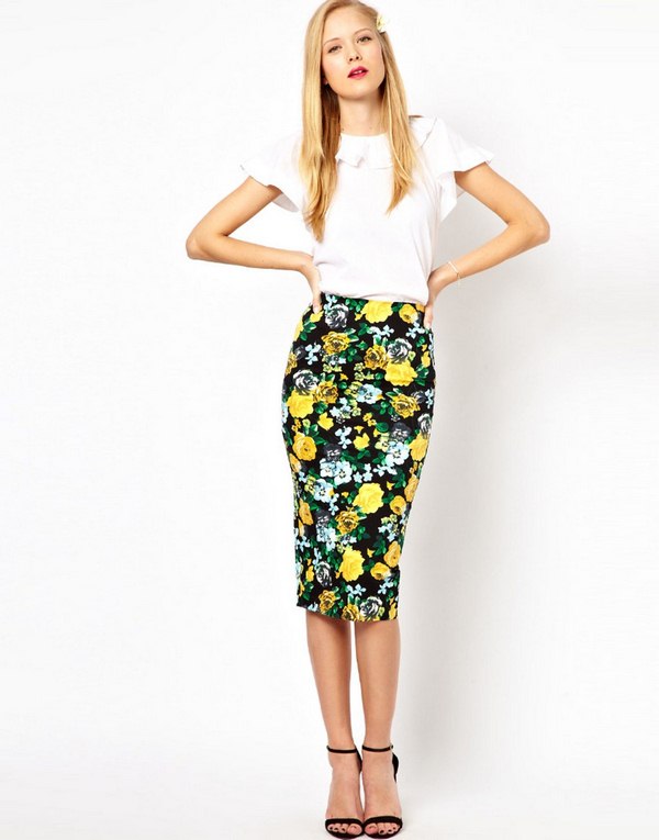 Les jupes crayon de style allongé allongent visuellement la silhouette, aidant à «adoucir» les lignes et confèrent sophistication et élégance à l’ensemble de l’image. Les jupes allongées avec des impressions laconiques et des motifs élégants sont très belles, ainsi que dans une solution monochrome pour les arcs laconiques.
