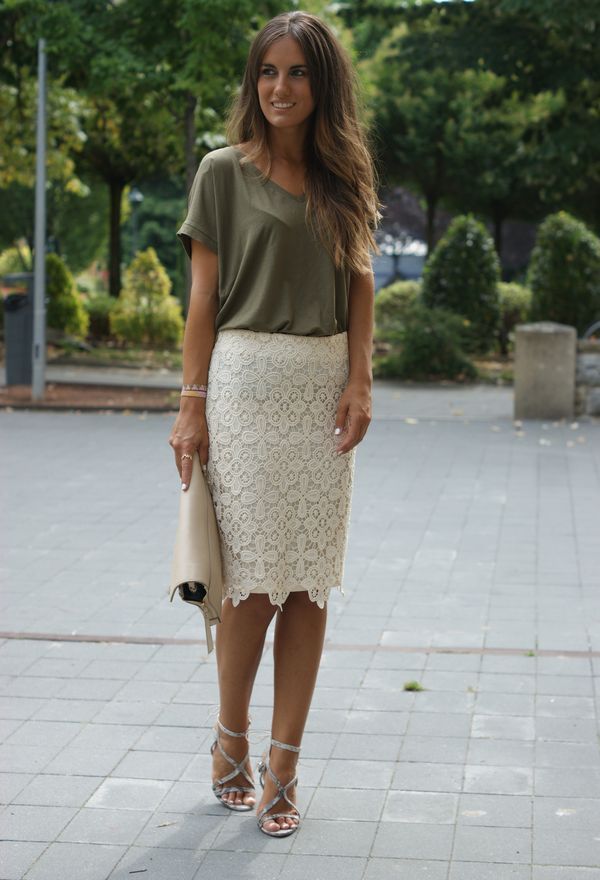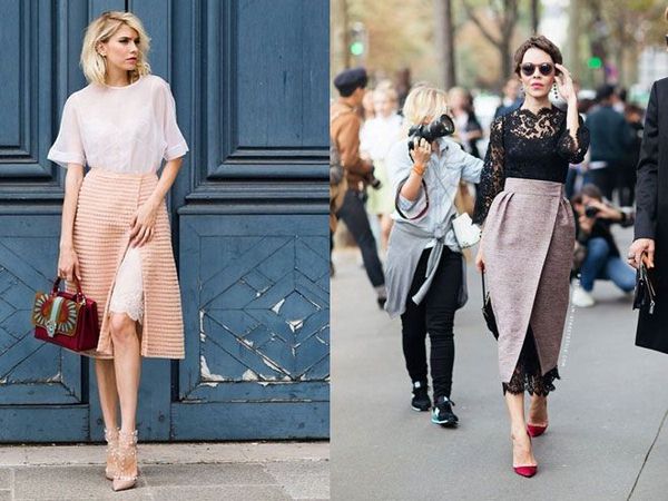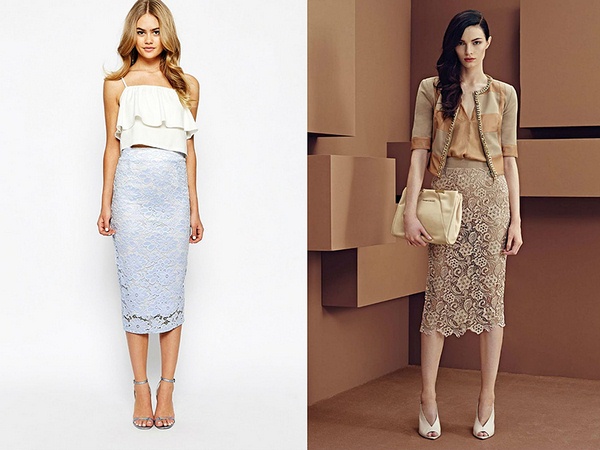 Les jupes les plus romantiques et sophistiquées de cette saison sont les jupes crayon en dentelle, qui peuvent aussi être faites de dentelle transparente ou de filet.
