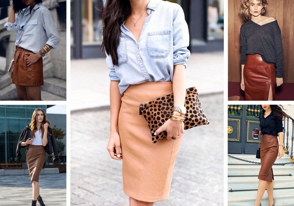 Une version très populaire d'une jupe crayon est une jupe en cuir de différentes couleurs: beige, poudrée, pêche, bordeaux, violet, noir, qui sont devenues le choix de tant de fashionistas.